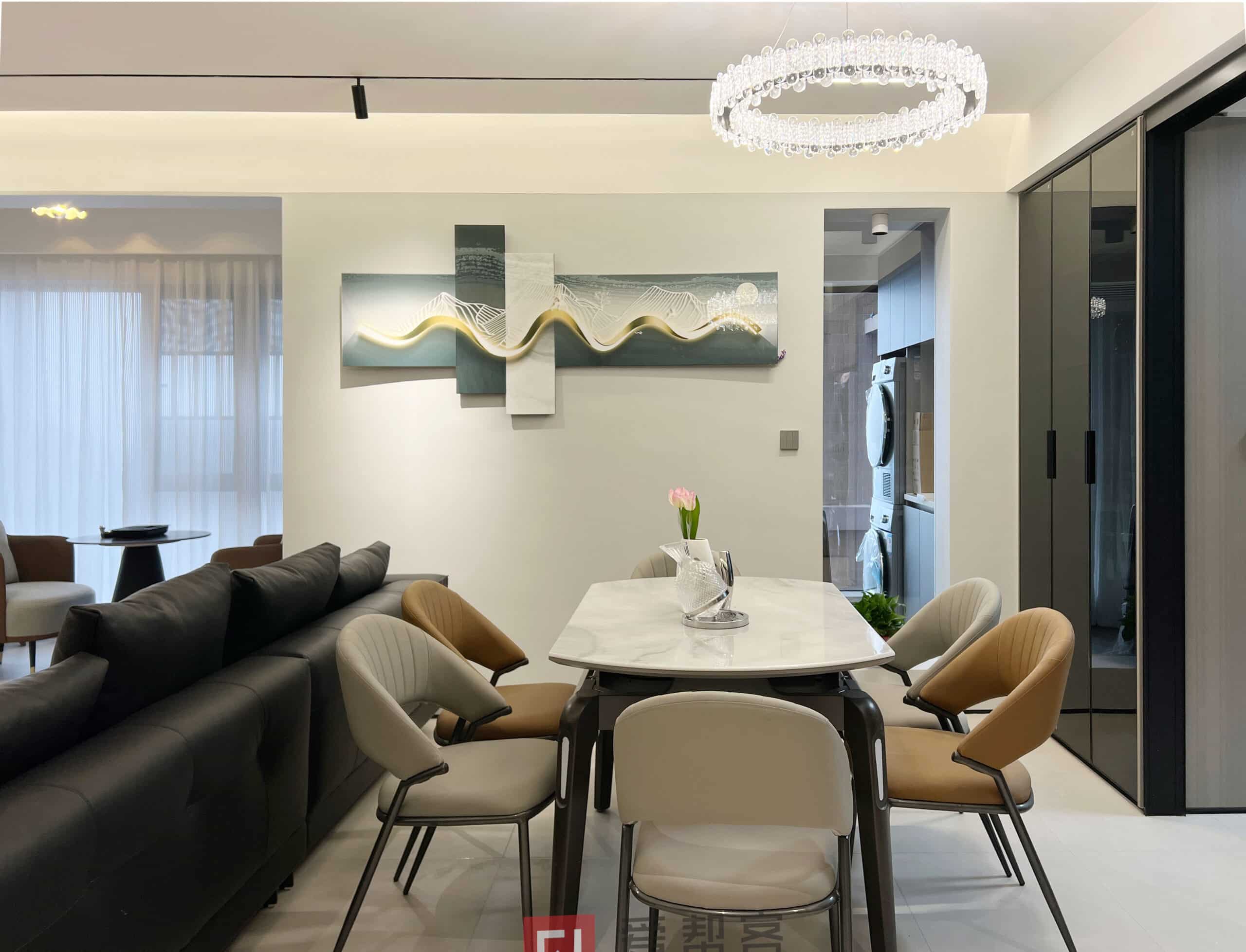 - 空间的升华:大横厅的布局确保了空间的开阔与流畅,为夫妻二人的互动与未来的生活变化提供了无限可能。整体设计在简约的基调下,通过材质的细腻变化,最终达成了温馨 治愈的居家感受。