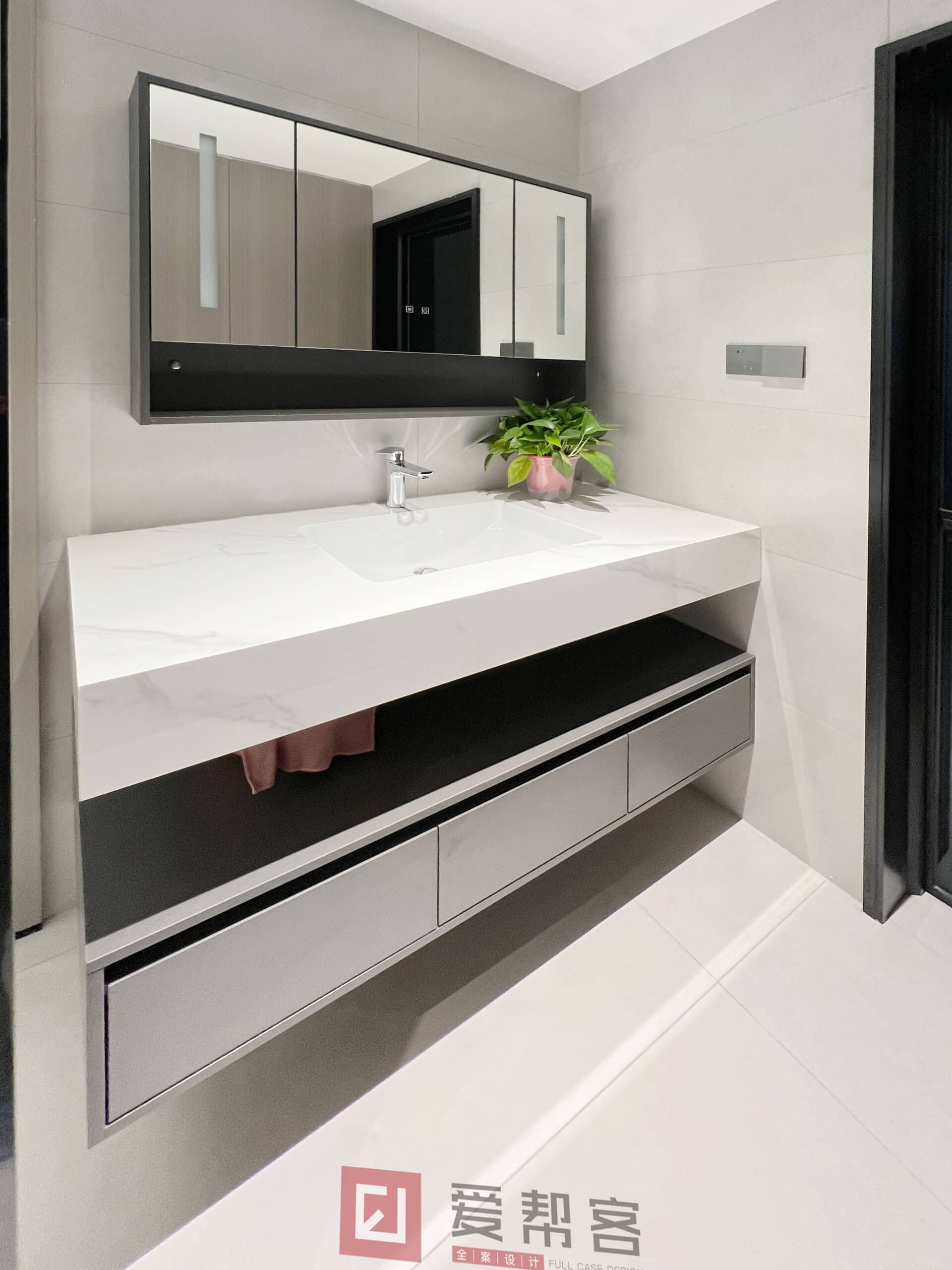 - 质感主体:全屋浅灰色定制柜、浅色哑光瓷砖、水磨石应用及全部墙面处理。