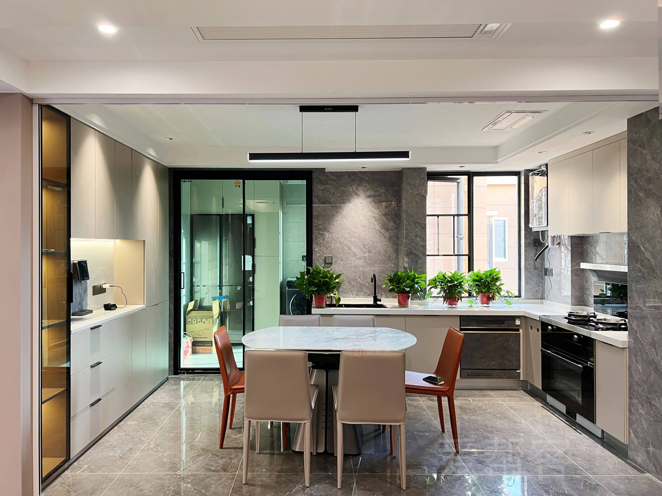 - 格局再造:打通了 “厨房与餐厅之间的隔墙”,实现了客餐厨一体的开放式布局,极大提升了空间通透性与互动性。